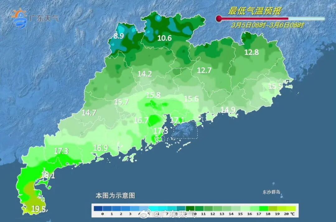 据@广东天气预计,3月5日,全省大部阴天间多云有分散小雨;6-9日,我省大部多云到晴,其中8-9日西部市县早晚有轻雾;10-11日,西北部市县多云到阴天,有分散小雨,其余市县多云天气为主;早晚有(轻)雾。