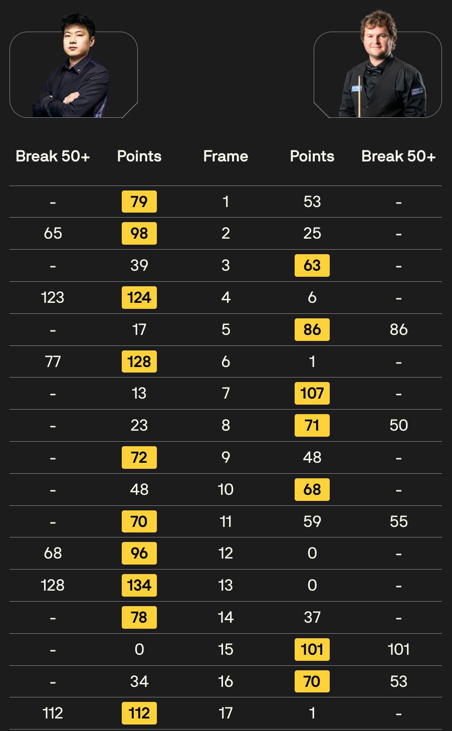 第一阶段双方争夺激烈,赵心童以5-4微弱优势领先;第二阶段海菲尔德一度将比分追至5-5平,随后赵心童凭借稳定发挥与强势进攻连下四局,打出三杆破百及三杆50+,率先拿到赛点。尽管对手顽强反扑连追两局,但赵心童在决胜局打出单杆112分锁定胜局,成功闯过首轮关。